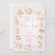 Dulce y bonita en rosa Invitación a la fiesta de té! Cuenta con tetera, tazas de té, macarons, pasteles, postres, fresas, regalos, pastel y cupcakes. Todo el texto es editable. ¡Ideal para cualquier celebración y ocasión de Par-tea!