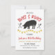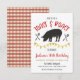 Plantilla editable de invitación para asado de cerdo. ¡Utilice esta divertida invitación para asado y brindis de cerdo para cualquier fiesta! ¡Ideal para graduaciones, jubilaciones y cumpleaños!