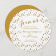 Un bonito diseño en forma de trozo redondo que hace una invitación informal, elegante y festiva, a sus Navidades o a la fiesta. En numerosos tonos dorados y con una opción de papel metálico, esta invitación será el escenario de su maravillosa reunión de esta temporada.