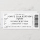 Un billete personalizable para una invitación de fiesta. Haga clic en "Personalizar" y cambie el color de fondo impreso para imprimir las entradas en cualquier color que elija. El texto del billete es totalmente personalizable.