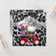 Divertida invitación de venta o fiesta de santa navideña con acentos de leopardo y joyas.