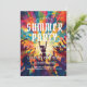Traiga la energía del verano a su evento con nuestra Invitación de Fiesta de Verano, que presenta una ilustración vibrante de una multitud colorida bailando. Este diseño animado captura la esencia de una fiesta de verano, con siluetas de personas en varias poses de baile contra un fondo de colores audaces y llamativos. La paleta vibrante emana emoción, lo que la hace perfecta para cualquier celebración de verano.