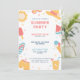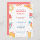 Moderno ilustracion simple amarillo, azul y rosa, invitación de fiesta de verano con tipografía personalizado en rosa, azul y negro.
