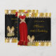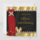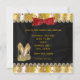 Invitación a la fiesta de vestido de tacones altos dorados y vestido rojo. Elija personalizar para agregar información. Elimine cualquier área de texto para dejarla en blanco.