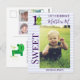 Esta es una divertida y linda invitación de cumpleaños inspirada en ranas. La plantilla está lista para usar, agrega tu propio mensaje, nombre del niño, fecha, lugar, hora, R.S.V.P., ¡y hasta fotos del bebé en la parte frontal y trasera de la tarjeta postal de invitación! Lo que hace única a esta invitación de cumpleaños es la posibilidad de agregar 5 fotos diferentes como hitos desde cero meses hasta 12 meses, es más que una invitación, es un álbum de fotos del bebé. Esta invitación también es perfecta para una fiesta con tema de ranas. ¡Personaliza la tuya ahora!