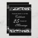 Tarjeta de invitación a la fiesta de bodas de plata con elegante estampado floral en blanco y negro, delicada y formal. Personalizable con los detalles de su fiesta.