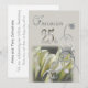 Una elegante invitación de aniversario de fiesta floral con lirios de calla blancos resaltados por un remolino plateado y texto sobre un suave fondo gris. Puede personalizar la parte posterior con su propio texto.