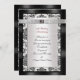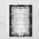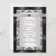 25º aniversario invitación a la fiesta elegante frontera formal de damasco blanco y negro con cintas de satén y corazones plateados