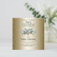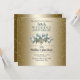 Esta elegante invitación para el 50º aniversario de boda está diseñada con un ramo de tulipanes blancos, racimos de follaje y toques dorados, sobre un fondo de color dorado. El texto de la parte frontal incluye los nombres de la pareja, la fecha del evento, la hora, el lugar y la dirección. El texto de la parte posterior incluye los detalles de RSVP sobre un fondo de color dorado, con un acento de tulipanes blancos. Para personalizar, simplemente inserte sus datos en nuestra plantilla fácil, reemplazando el texto de muestra. Asegúrese de ver las piezas adicionales que coinciden con esta Colección de 50º Aniversario de Boda Dorada.