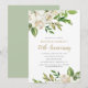 Invitaciones de aniversario de bodas número 50 impresas personalizadas y asequibles con un elegante borde floral pintado en blanco, verde y acentos de lámina dorada falsa. Personalice la plantilla con los detalles de su evento o use las herramientas de diseño para personalizar el texto, elegir colores de fondo y editar las fuentes para crear su propio diseño de invitación de aniversario de fiesta único. El reverso presenta un hermoso fondo verde salvia o use el espacio para agregar texto adicional o fotos si es necesario. Este hermoso diseño floral neutral es perfecto para cualquier temporada.