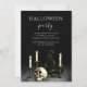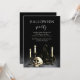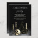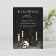 Esta elegante invitación de Halloween es perfecta para tu fiesta de Halloween con temas góticos. El diseño presenta un cráneo gótico blanco, velas encendidas y el gorra de brujas puntiagudas sobre un fondo oscuro. Personalice los datos de su fiesta.