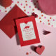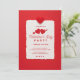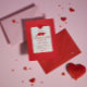 Corazón rojo 3D con fondo rojo y blanco, invitación personalizable para la fiesta del Día de San Valentín.