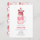 Una invitación a la fiesta de San Valentín con una ilustración de un batido extremo coronado con fresa cubierta de chocolate, dulces, sprinkles y cereza.