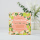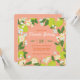 Establece el tono para tu celebración especial con esta encantadora invitación que presenta limones frescos y flores delicadas en tonos suaves de coral y verde. Los detalles botánicos dibujados a mano crean un marco perfecto para los detalles de tu evento personalizado, aportando un toque de elegancia fresca de jardín a la correspondencia de tu fiesta.