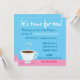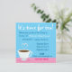 Una invitación personalizada para un Fiesta de té en honor a cualquier evento que te guste, con un lindo té blanco con una columna de vapor en forma de corazón sobre un fondo rosa y azul. Perfecto para cualquier ocasión donde se consuma té o café!