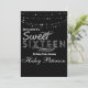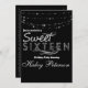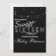 Invitación a la Fiesta Glam Purpurina de 16 dulces de color negro plateado
