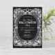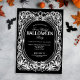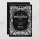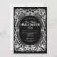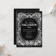 Invitación de la fiesta de Halloween con una atmósfera gótica y poco entumecida. Cuenta con un marco vintage, un tipo de letra de guión y un fondo negro que se transporta en la parte posterior de la tarjeta. Personalizar con sus propios detalles para difundir su espeluznante evento! Por favor, navegue por la colección de invitaciones para fiestas de Halloween para ver más diseños.