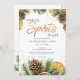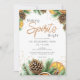 Una alegre invitación navideña con un cálido encanto rústico. Este diseño presenta piñas de pino pintadas con acuarela, rodajas de cítricos y ramas de abeto, junto con la frase 'Alegrando Espíritus' en letra cursiva suave. Adecuado para cenas navideñas, fiestas de cóctel o reuniones de temporada. Todo el texto es totalmente editable para adaptarse a su evento.
