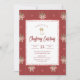 Invite a amigos a celebrar la temporada con esta Invitación de Fiesta de Cócteles de Navidad Rústica con Botánicos, adornada con vegetación en acuarela, bayas rojas y dulces lazos navideños sobre un fondo rojo intenso. Los detalles pintados a mano y la tipografía elegante crean un ambiente festivo pero refinado para su reunión.