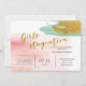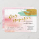 Trae tu actitud alegre a una fiesta nupcial con esta invitación a la coloración de color azul y acentos dorados turquesa. Toda la información está en sans serif font con signo de oro personalizado