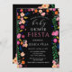 Una colorida y florida invitación a la fiesta de los bebés con un diseño de arte negro rosa floral de fiesta mexicana. Este fiesta de ducha de bebé invita a que se le pueda personalizar con su información.