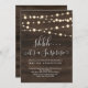 Luces de cuerda sobre un fondo rústico de madera complementado con una bella caligrafía.