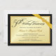 Cree sus propias invitaciones personalizadas para la fiesta del 50 aniversario de bodas: borde negro clásico sobre marco dorado beige con cinta dorada impresa y corazón de piedra preciosa dorada. Tipografía con apariencia grabada hermosa con letras de estilo vintage adornadas con florituras: elegante, lujo asequible y diseñado exclusivamente para usted. Simplemente agregue los nombres, la fecha y los detalles para la celebración de su aniversario de bodas. **NOTA: Todos los elementos de este diseño son parte de la imagen impresa; la cinta, el broche de joyas y el marco NO están levantados, grabados en relieve ni se presentan como adornos reales. Tamaño adecuado para tarjetas de invitación pequeñas. Haga clic en "Personalizar" para cambiar el tamaño, las opciones de papel o las opciones de fuente. Otros tamaños y estilos disponibles en la galería. © Teri Francis. Conjuntos coordinados con estamp