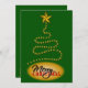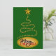 Resumen de árbol de Navidad © Sunny Mars Designs. Invitaciones o invitaciones de Navidades de personalizable verde y oro con un árbol de Navidad abstracto hecho de estrellas y una gran estrella en la parte superior, con las palabras "Feliz Navidad" debajo.