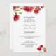 Invitación formal a la boda. Se enumeran los dos conjuntos de padres. Acuarela silenciada Fondo de adornos rojos florales.