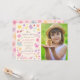 Invitación a la foto del Fiesta de primer cumpleaños de Pollo Rosado. ¡Celebra el primer cumpleaños de tu pequeña chica con esta adorable invitación de la granja! Con un dulce pollo para bebés y un diseño lúdico, es perfecto para un festín de jardín que nunca olvidarán.
