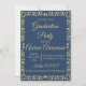 Las invitaciones a las fiestas de graduación, sencillas pero elegantes, incluyen una vid de hojas de oro alrededor del borde y un texto de oro moderno sobre un fondo azul marino. Una apariencia elegante y elegante para un graduado de secundaria o universitario. Personalizar la invitación a graduarse en azul y oro con una foto del graduado, su escuela y el año de graduación en la parte de atrás de la invitación.