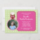 Curada y moderna invitación a graduarse. Ideal para una graduación de preescolar o kindergarten. Cuenta con un búho lindo con una tapa de graduación. La foto está encerrada en círculo con un borde de vieiras para un toque divertido. La redacción va dentro de un marco ornamentado. Añade una foto del orgulloso graduado y tu propio texto.