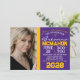 Invitación a graduación moderna de color morado y amarillo dorado - 1 foto - Clase repetitiva año atrás