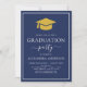 2024 Color Option - Modern and Elegant Navy Blue, Gold and White Photo Picture Graduation Party Invitation - incluye una tipografía de guion hermosa y elegante con un estilo de moda moderno para la celebración especial Graduado a Ser Clase.