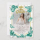 Captura la esencia de tu celebración de Quinceañera con nuestras invitaciones fotográficas sobre tiara y mariposas. Crear recuerdos mágicos con diseños florales de color esmeralda verde entrelazados con confeti brillante, todo ello dentro de un marco geométrico moderno. Estas encantadoras invitaciones marcarán el tono para una celebración inolvidable.