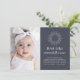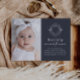 Una primera invitación de cumpleaños con un contorno solar y una tipografía de "primer viaje alrededor del sol", además de tu propia foto. El reverso presenta un fondo marino con un patrón de estrella y luna. ¡Ideal para la fiesta de cumpleaños número 1 de tu pequeña!