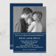 Esta atractiva invitación contemporánea y elegante a los chicos de color azul marino del bautismo presenta la capacidad de añadir la foto de su hijo o familia. Fondo azul marino con texto blanco y bordes de acento.