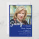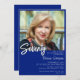 Foto moderna minimalista, azul real y blanca, invitación a la fiesta de cumpleaños 70 para una divertida fiesta de cumpleaños. La edad se puede cambiar. Esta invitación es simple y elegante, invitaciones de cumpleaños para adultos para hombres y mujeres. El color de fondo azul y blanco real se puede cambiar a cualquier color que elija utilizando la herramienta de diseño.