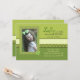 Una mezcla de tonos verdes, rayas y polkadots se emparejan con un marco de trébol o shamrock para crear esta festiva invitación fotográfica del Día de San Patricio.
