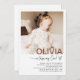 Siga estos pasos para que su imagen se ajuste perfectamente a la plantilla. Haga clic en Detalles> actualizar su información> Haga clic en "cambiar" para reemplazar su propia foto > Haga clic en "editar usando la herramienta de diseño"> Haga clic en foto para desplazarse a la ubicación ideal. ¡Haz especial tu primer cumpleaños con nuestra minimalista invitación de cumpleaños! Esta invitación de cumpleaños presenta un diseño suave y elegante, perfecto para niños y chicas. El punto culminante de la invitación es una encantadora foto de su bebé, agregando un toque personal a su celebración.