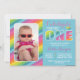 Celebra el grande ONE con esta adorable invitación a la foto de primer cumpleaños. Cutáneo detalle cardíaco arco iris. Diseño fácil de personalizar, agregue la foto de su pequeño y el texto de su personalizado.