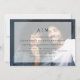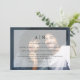 Estas invitaciones caseras modernas y minimalistas incluyen su propia foto cubriendo el fondo completamente. Un overlay blanco completo contiene todos los términos de la invitación de boda, así como sus iniciales, y su monograma también aparece en la parte posterior.