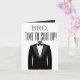 Bro Tiempo de Demonios con esmoquin delante. Personalizado con el nombre del novio, mensaje, nombre del novio y fecha dada para la fecha del boda. Agrega una foto tuya y de tu amigo o hermano.