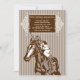 Una bonita invitación a correr en tonos marrones y blancos con un caballo y jockey. (VTZY)