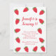 Las fresas rojas brillantes con invitación de fondo de bandeja verde, pueden ser personalizadas para las duchas de cumpleaños o cualquier ocasión especial!
