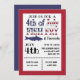 ¡Únete a nosotros para una FRIURA DE PESCADO el 4 de julio! Inserta tu hora e información. Palabras formateadas con la bandera de EE. UU. con silueta de bagre azul coincidente.