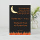 Invitación a la fiesta de Halloween con la frontera entre los farolillos y la luna creciente y el murciélago sobre fondo negro. Las invitaciones vienen con sobres y tu elección de papel.