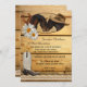 Una invitación romántica de fiesta posterior a la boda con dos caballos en un panel de madera con herraduras, encaje y una bota de vaquero. Ideal para una recepción o celebración después de la boda con tema western o para amantes de los caballos.