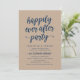 Esta es la tarjeta de invitación de fuga de novios con temática de caligrafía naval azul rústica simple moderna, marrón kraft (fiesta feliz para siempre). Una tarjeta perfecta para invitar a su familia y amigos queridos en el anuncio de fuga de novios y la celebración de la fiesta de recepción. Agregue los detalles de su celebración en la letra / letra coincidente.