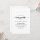 Esta minimalista caligrafía, la invitación a rociar un bebé, es perfecta para una ducha rústica. El diseño, sencillo y elegante, presenta una tipografía de escritura clásica y elegante en blanco y negro.